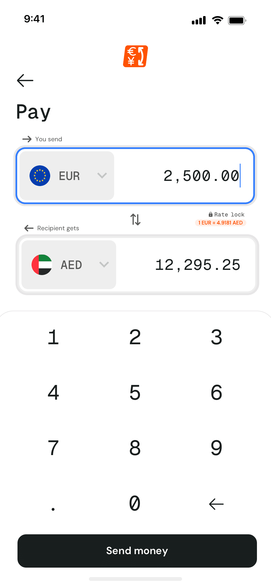 Send securely and track your transfer in real time.